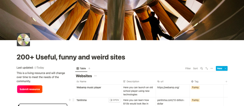 Database of 200+ useful, funny or weird websites. This is a living resource and will change over time, you can submit your selection as one of the tags!